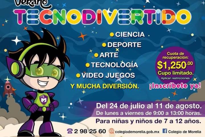 NOTICIAS 14/06/2017Abre Colegio de Morelia inscripciones al Curso de Verano Tecnodivertido El Colegio de Morelia sigue impulsando el desarrollo integral de los niños y niñas de la ciudad, además de fomentar el compañerismo y trabajo en equipo, lo anterior, al anunciar que su Curso de Verano Tecnodivertido arrancó con inscripciones e iniciará actividades el próximo 24 de julio.