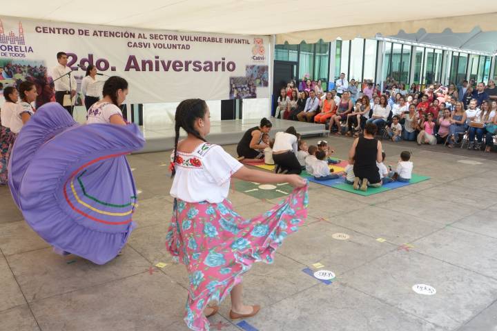 NOTICIAS 28/05/2017Reconocen madres beneficiarias trabajo del CASVI VoluntadUn trato especializado y de calidad que ha permitido el desarrollo óptimo de los niños, fue el trabajo que reconoció la Presidenta Honoraria del DIF de Morelia, Paola Delgadillo de MartÃnez durante el Segundo Aniversario del Centro de Atención al Sector Vulnerable Infantil (CASVI) "Voluntad".