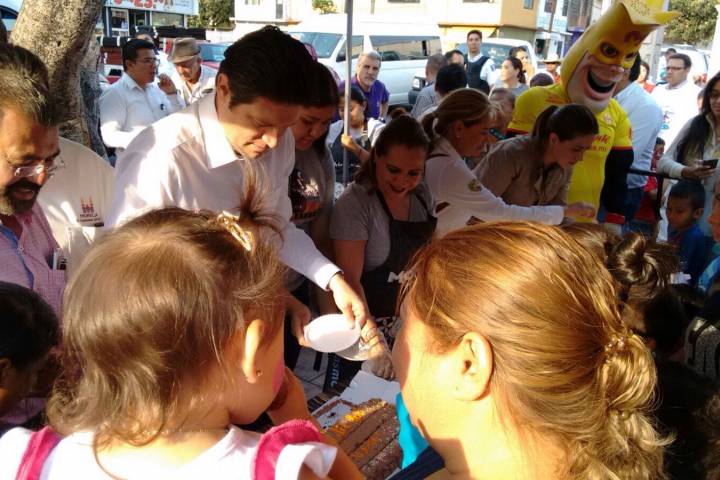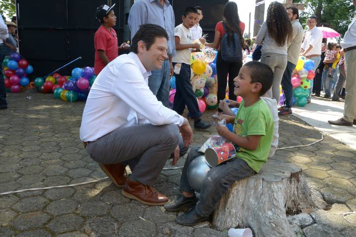 El alcalde de Morelia, Alfonso Martínez Alcázar acompaño a su esposa, la presidenta honoraria del DIF Municipal, Paola Delgadillo, a festejar el Día del Niños en la tenencia de Santa María, donde los agasajados fueron los infantes.