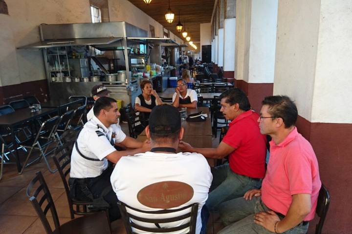 NOTICIAS 23/03/2017Policía de Morelia realiza acciones de proximidad con comerciantes de la Plaza San AgustínComo parte de las acciones permanentes de proximidad y cercanía con la ciudadanía que realiza la Policía de Morelia, elementos municipales sostuvieron una reunión con comerciantes ubicados en la Plaza de Antojitos de San Agustín, con quienes acordaron intensificar las acciones de vigilancia.