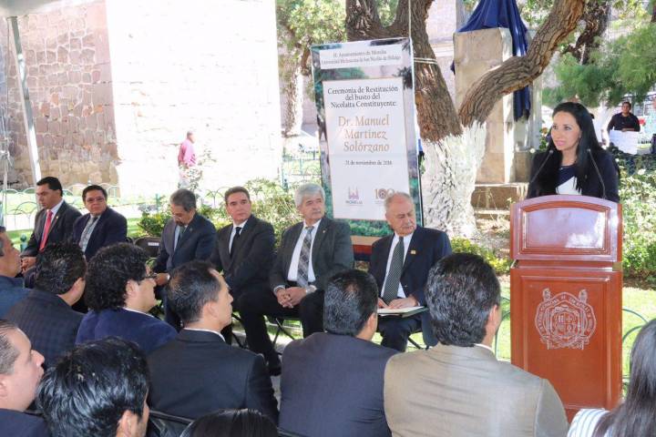 NOTICIAS 21/11/2016Ayuntamiento restituye busto en espacio público de Morelia Con el compromiso de que esta sea tan solo la primera de varias acciones tendientes a promover y preservar los sitios y edificios pertenecientes al patrimonio cultural Morelia, el Ayuntamiento de Morelia, a través de la Comisión de Servicios Públicos, en conjunto con la UMSNH, realizaron este lunes la ceremonia de restitución del busto del nicolaita constituyente "Manuel MartÃnez Solórzano", ubicado en el JardÃn de la Biblioteca Pública U... Ver más...