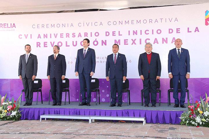 NOTICIAS 20/11/2016Pendientes de la Revolución deben resolverse mediante el diálogo y la democracia: Yankel BenítezAutoridades de los tres órdenes de Gobierno, encabezadas por el Presidente Municipal de Morelia, Alfonso Martínez Alcázar y el Secretario de Gobierno, Adrián López Solís, rememoraron la mañana de este domingo, a los líderes y ciudadanos que dieron inicio a la Revolución Mexicana, aquel 20 de noviembre de 1910.