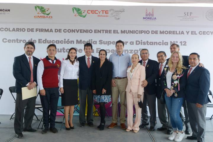 El Ayuntamiento de Morelia apoyó al CECyTEM con 1.5 millones de pesos para la construcción de cuatro aulas y una fosa séptica en el plantel de Cuto de la Esperanza; cuyo plantel desde hace 13 años dan clases sin infraestructura y condiciones inadecuadas.