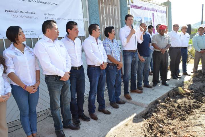 NOTICIAS 31/08/2016Alfonso pone en marcha ampliación de agua potable en colonia La Huertita Con paso firme para que los morelianos cuenten con los servicios básicos, el Presidente Municipal de Morelia, Alfonso Martínez Alcázar dio el "Banderazo Inicial" de arranque de la obra de ampliación de la red de agua potable en las calles Durazno, Mango y Limón de la colonia La Huertita.