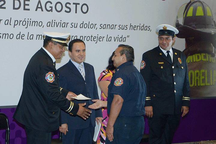 NOTICIAS 22/08/2016Ayuntamiento dota de equipo de trabajo a Bomberos municipalesEn aras de fortalecer al cuerpo de Protección Civil y Bomberos para que continúen brindando un servicio de calidad a los ciudadanos, el Ayuntamiento de Morelia que encabeza el Presidente Municipal, Alfonso Martínez Alcázar, a través de la Secretaría del Ayuntamiento, entregó equipos de trabajo e incentivos económicos en el marco del 143 Aniversario del Día Nacional del Bombero a integrantes del cuerpo de emergencia.