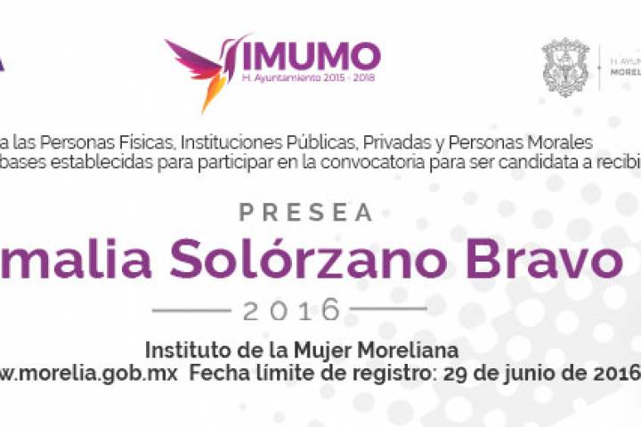NOTICIAS 07/06/2016Abierta, convocatoria para Presea Amalia Solórzano BravoEn el ánimo de incentivar a las asociaciones sociales, así como a las personas físicas o morales a postular o postularse para recibir la "Presea Amalia Solórzano Bravo" en su edición 2016, el Regidor Félix Madrigal Pulido, coordinador de la Comisión de la Mujer, Juventud y el Deporte del Ayuntamiento capitalino, invitó a las mujeres morelianas a continuar registrándose dentro de la Convocatoria de este galardón, misma que concluirá e... Ver más...