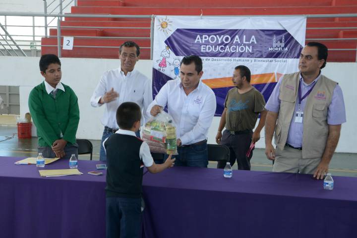 NOTICIAS 26/04/2016Gobierno Municipal apuesta a promover el desarrollo integral de los niños Promover el desarrollo integral de los niños y jóvenes morelianos, mediante programas que alienten su acceso y continuidad escolar, es para el Gobierno Municipal una de las principales prioridades, destacó el Secretario de Desarrollo Humano y Bienestar Social, Guillermo Cuitláhuac Marín Chávez, al encabezar la Entrega de Becas Alimentarias a estudiantes del municipio.