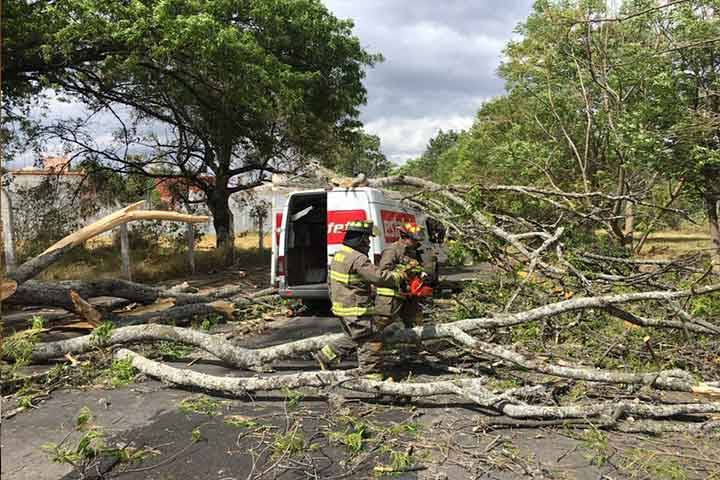 El Ayuntamiento de Morelia, a través de la Coordinación de Protección Civil y de Bomberos y la Secretaría de Servicios Públicos municipales, atiende de manera inmediata y oportuna el derribo de árboles y ramas en la capital michoacana, derivado de los fuertes vientos registrados en las últimas horas.