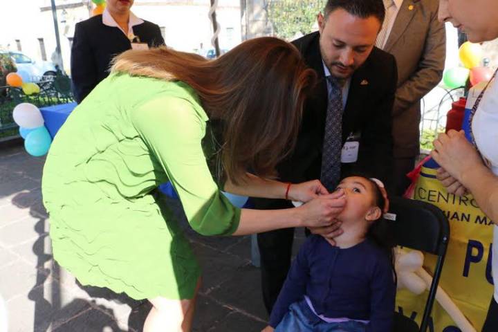 La presidenta honoraria del DIF Morelia, Paola Delgadillo de Martínez, fue la encargada de dar el banderazo de arranque en la campaña "Mientras tú los quieres, las vacunas los protegen", que se lleva a cabo del 20 al 26 de febrero en el municipio.