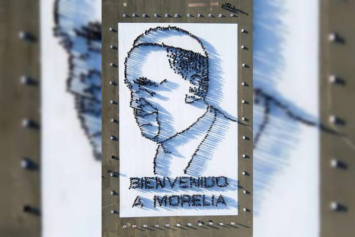 NOTICIAS 16/02/2016Morelianos dan la bienvenida al Papa con Retrato VivienteMás de 1000 jóvenes y adultos morelianos dieron la bienvenida la mañana de este martes al Papa Francisco durante los primeros minutos de su estancia en la capital michoacana, a través de la creación de un retrato viviente con su rostro y una leyenda que le dio la bienvenida a la capital Michoacana.