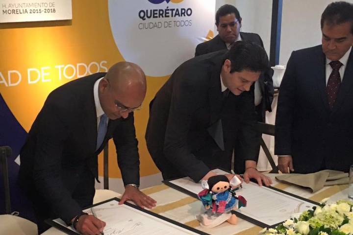 NOTICIAS 05/02/2016Morelia y Querétaro firman Hermanamiento Consolidar una red de desarrollo regional que permita a las ciudades de Morelia, Querétaro y León formar el Diamante del Centro de México y asà potenciar las actividades en materia de inversión, económicas, turÃsticas y culturales de esta zona, representa uno de los principales objetivos del Ayuntamiento capitalino, acotó el Presidente Municipal, Alfonso MartÃnez Alcázar, durante el Evento de Firma de Hermanamiento entre Morelia y QuerÃ... Ver más...