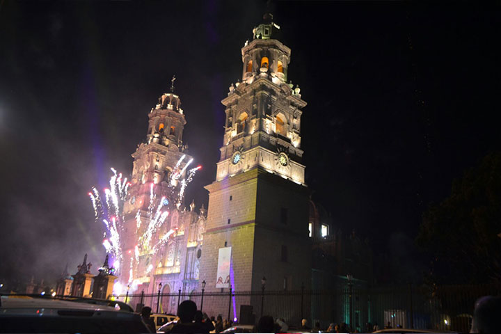 Con el objetivo de brindarle a los morelianos y a los turistas una noche mágica para recibir el año 2016, el Ayuntamiento de Morelia que encabeza el Alcalde, Alfonso Martínez Alcázar, preparó un espectáculo con juegos pirotécnicos los cuáles iluminaran la majestuosa Catedral y darán un ambiente de fiesta familiar durante los primeros minutos del próximo año.