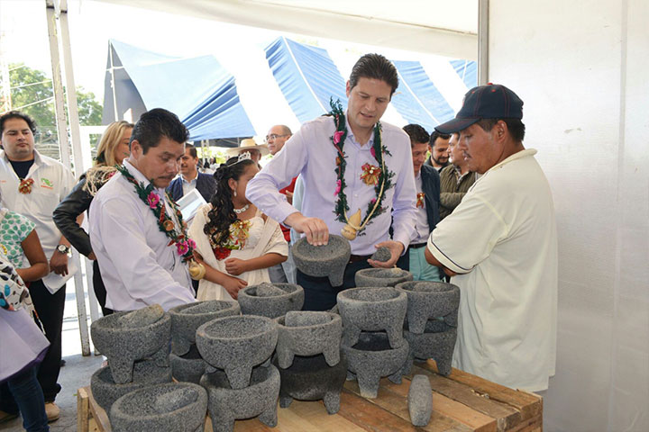 Con el objetivo de desarrollar la economía local de San Nicolás Obispo, así como apoyar a los artesanos de esta tenencia con la elaboración del tradicional molcajete, el Presidente Municipal Alfonso Martínez Alcázar inauguró la tarde de este viernes la primera Feria del Molcajete y el Metate, la cual cuenta con la participación de 80 artesanos quienes expondrán sus piezas hasta el próximo domingo 20 de diciembre.
