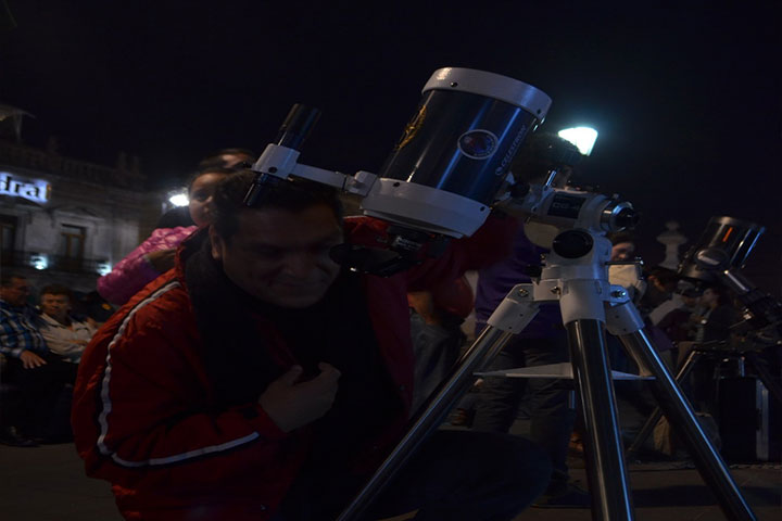 NOTICIAS 20/12/2015Eventos culturales en el Centro reúnen a cientos de morelianos Con gran respuesta de los morelianos, se llevó a cabo en el andador Hidalgo el programa Morelia Te baja la luna y las estrellas, en donde chicos y grandes pudieron disfrutar de la astronomía a través de 16 potentes lentes de telescopios que fueron prestados por gente especialista en esta materia.