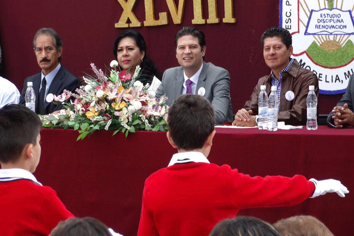 El acto protocolario inició en punto de las 8 horas en el Auditorio del Complejo Deportivo Bicentenario y contó con la presencia de Iván Fernando Barrales, director de Gobierno Municipal de Morelia, Porfirio Alejandro Liborio Rojas, jefe de la Junta Municipal d... Ver más...