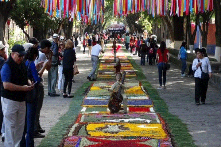 NOTICIAS 14/11/2015Regresa Patamban a la CalzadaLa secretaria de Turismo y Cultura de Morelia, Thelma Aquique Arrieta y la Presidenta Honoraria del DIF Municipal, Paola Delgadillo de Martínez en compañía de la directora general del Festival de Música Miguel Bernal Jiménez, Verónica Bernal Vargas inauguraron la exposición de Tapetes Florales de Patamban en la Calzada Fray Antonio de San Miguel, que estará este fin de semana con motivo de la 27 edición de este evento.