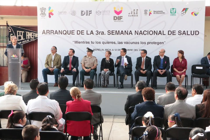 NOTICIAS 12/10/2015Ayuntamiento de Morelia, comprometido con la salud de la ciudadaníaCon la implementación de más de 2 millones 300 mil acciones, arrancó en la capital michoacana la Tercera Semana de Salud en la Escuela Primaria América, que llevará por nombre "Mientras tú los quieres, las vacunas los protegen".