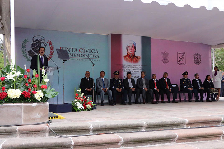 En el marco del 250 aniversario de José María Morelos y Pavón, Alfonso Martínez Alcázar, presidente municipal de Morelia, quien fungió como orador oficial, dijo que se debe sentir el compromiso que dejo como legado, pues este ejercicio de memoria colectiva debe ayudarnos a encontrar en su ejemplo heroico el paradigma de lealtad y compromiso con México, con Michoacán y con Morelia.