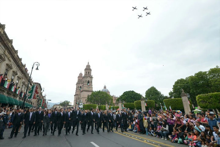 NOTICIAS 30/09/2015Fuerza Aérea surca cielo de Morelia durante desfileComo una muestra de confianza y participación cívica, los morelianos tomaron las calles del Centro Histórico para admirar el desfile conmemorativo por el CCL Aniversario del Natalicio de José María Morelos y Pavón, un evento que destacó por la gran convocatoria y la alegría de miles de familias que se dieron cita.