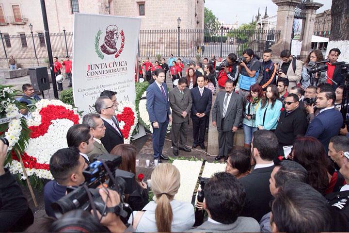 NOTICIAS 15/09/2015Ayuntamiento rinde homenaje a víctimas del 15 de Septiembre del 2008 El Ayuntamiento de Morelia encabezado por el Presidente Municipal, Alfonso Martínez Alcázar, realizó un homenaje a las víctimas del atentado registrado el 15 de Septiembre del 2008, por lo que como cada año, se colocó una ofrenda floral y se montó guardia de honor en la placa que rememora a quienes perdieron la vida.