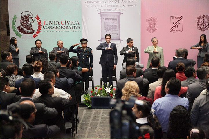 Reunidos en el patio principal del Palacio del Ayuntamiento de Morelia, autoridades de los 3 niveles de gobierno, conmemoraron el Aniversario 187 del cambio de nombre de Valladolid a Morelia, en honor al generalísimo José María Morelos y Pavón.