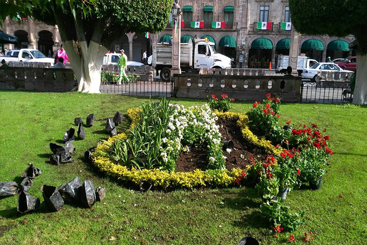 Con el objetivo de otorgar una mejor imagen a la capital michoacana durante este mes patrio, la dirección de Parques y Jardines ha implementado la rehabilitación de diferentes plazas con la colocación de más de 8 mil plantas, que estarán formando imágenes alusivas a la Independencia de México.