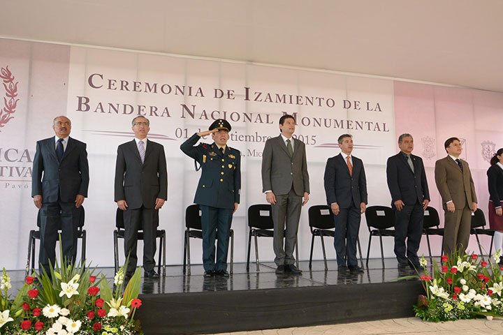 El presidente municipal electo de Morelia, Alfonso Martínez Alcázar encabezó el izamiento de la Bandera Nacional Monumental, acto con el cual inician las actividades a realizarse con motivo del mes patrio, así como el arranque de la nueva Administración Independiente.