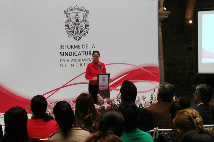 Sin datos, sin cifras, Maribel Rodríguez Álvarez rindió su informe como síndico municipal de Morelia, que emprendió de enero a la fecha.