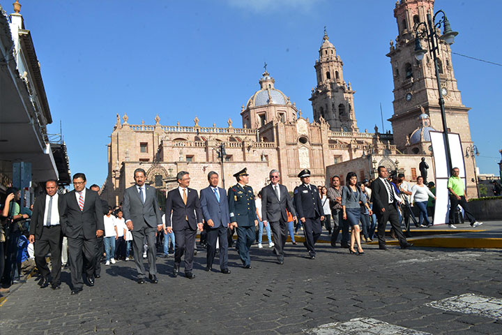 En Bando Solemne, la Junta Cívica Conmemorativa "José María Morelos y Pavón 2015" efectuó un recorrido por el primer cuadro del centro histórico, para realizar la colocación del Programa General de Actividades, con motivo de la celebración de las fiestas patrias.