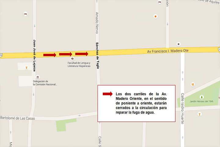 El Organismo Operador de Agua Potable, Alcantarillado y Saneamiento de Morelia (OOAPAS) informa que después de la contingencia del domingo 23 de agosto, ocurrida en el carril lateral poniente-oriente de la avenida Camelinas, recorrerá la fecha de reparación de la fuga detectada sobre la avenida Madero Oriente, a fin de reducir afectaciones viales en esta primera semana de clases.