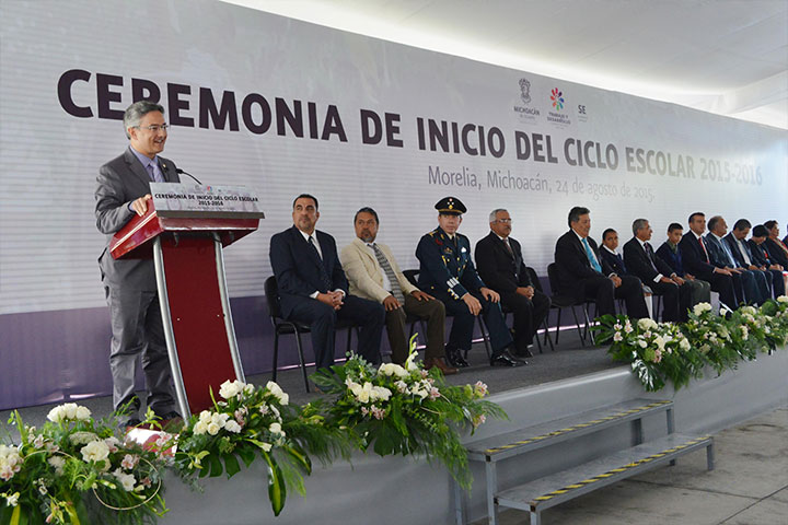 El Presidente municipal, Salvador Abud Mirabent, hizo un llamado a autoridades civiles y educativas, a emprender una gran cruzada global por el rescate de la Educación de Michoacán, esto, al hablar durante la Ceremonia de Inicio de Ciclo Escolar 2015-2016 en la Escuela Secundaria Federal "Melchor Ocampo".