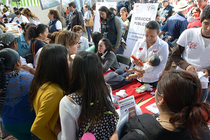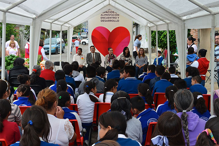 Más de 120 niños y adolescentes de preescolar, primaria, secundaria y bachillerato de la colonia La Esperanza, así como adultos que no cuentan con servicios de asistencia social alimentaria, recibirán diariamente alimentos nutritivos en el Espacio de Alimentación, Encuentro y Desarrollo, que fue inaugurado este lunes por Miriam Cruz de Abud, presidenta del Sistema DIF Morelia.