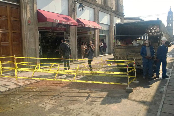NOTICIAS 27/05/2015Reparan de fuga en la calle Antonio AlzateEl Organismo Operador de Agua Potable, Alcantarillado y Saneamiento de Morelia (OOAPAS) informa que este miércoles se detectó una fuga en el Centro Histórico de la capital michoacana, sobre la calle Antonio Alzate, por lo que de inmediato se procedió a su reparación, así como a la sustitución de una descarga sanitaria.