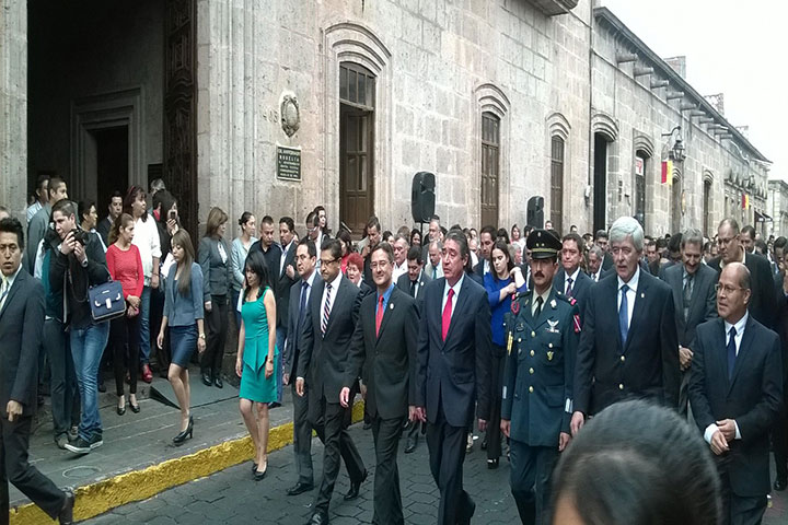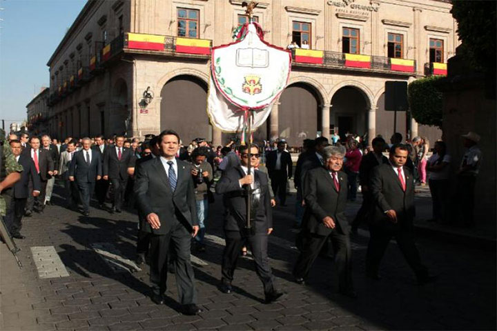 Al ritmo de los tambores de la banda de guerra del Ejército Mexicano, los funcionarios, encabezados por el presidente municipal de Morelia Salvador Abud Mirabent, develaron cada uno de los Bando... Ver más...