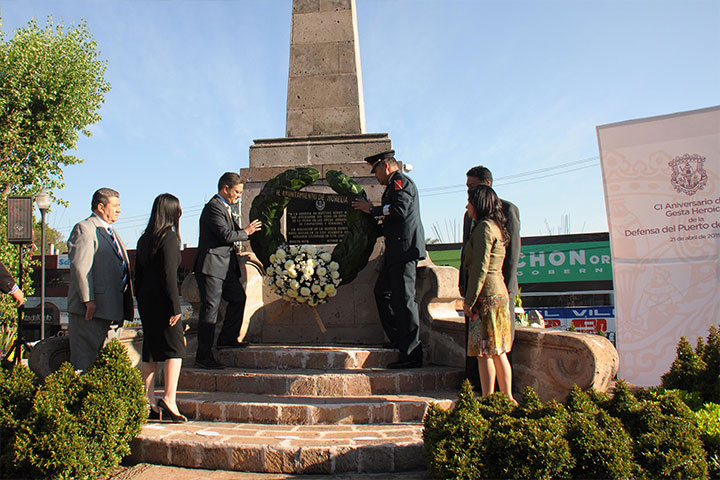 NOTICIAS 21/04/2015Conmemoran 101 aniversario de la Gesta Heroica de la Defensa del Puerto de VeracruzEl presidente municipal de Morelia, Salvador Abud Mirabent, presidió la ceremonia conmemorativa del 101 aniversario de la Gesta Heroica de la Defensa del Puerto de Veracruz, en la que las autoridades colocaron una ofrenda floral y montaron guardia de honor en la Glorieta El Ancla.