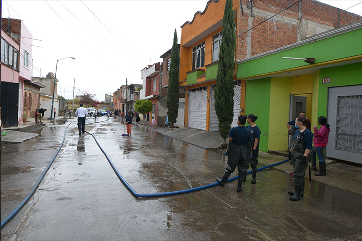NOTICIAS 16/03/2015Inicia Protección Civil labores para sacar agua de casas inundadas Esta mañana, a partir de las 8:00 horas, el personal de Protección Civil y Bomberos municipales activó el plan de acciones de apoyo para bombear el agua contaminada de las casas que se inundaron en este fin de semana, ante las constantes lluvias presentadas en la ciudad.
