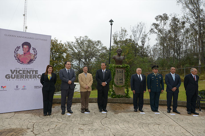 NOTICIAS 14/02/2015Conmemoran aniversario luctuoso de Vicente GuerreroEn conmemoración del CLXXXIV aniversario luctuoso de Vicente Guerrero, la mañana de este sábado el presidente municipal de Morelia, Wilfrido Lázaro Medina, acompañado de funcionarios de los tres niveles de gobierno, encabezó el depósito de una ofrenda floral y una guardia en honor del General Insurgente.