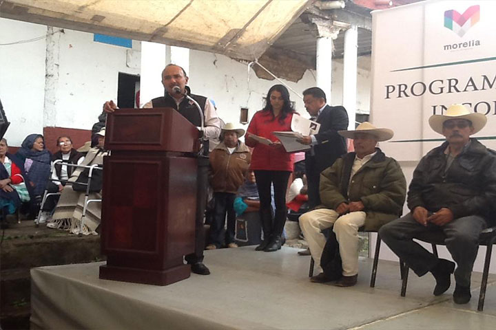 NOTICIAS 15/02/2015600 adultos mayores de la zona rural de Morelia reciben apoyo económicoCon la entrega de apoyos e incorporaciones al Programa de Pensión para los Adultos Mayores, la administración municipal que encabeza Wilfrido Lázaro Medina busca contribuir a la ampliación de los esquemas de seguridad universal para las personas de 60 años en adelante fortaleciendo el eje del plan municipal de desarrollo por un Morelia Solidario.