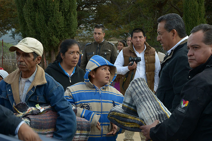 NOTICIAS 04/02/2015Continúa la entrega de cobijas y despensas para mitigar el fríoEl Gobierno Municipal que encabeza Wilfrido Lázaro Medina, cumple con las encomiendas de la Federación en la entrega de cobijas, despensas y colchonetas, que por disposición del Presidente Enrique Peña Nieto, llegaron al municipio para que los ciudadanos de escasos recursos que viven en las zonas más frías, puedan enfrentar las heladas de la actual temporada invernal.