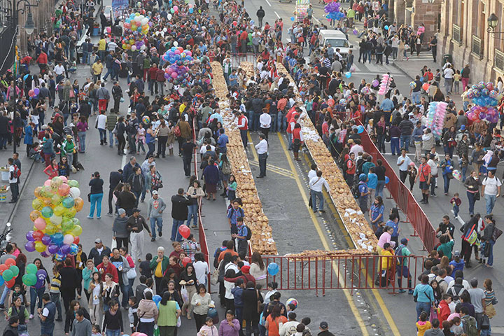 NOTICIAS 04/01/2015Morelianos disfrutaron de la tradicional Rosca de Reyes Miles de familias departieron esta tarde con el presidente municipal Wilfrido Lázaro Medina y su esposa, la Sra. Maggy Oribio de Lázaro, en el evento donde se repartieron más de 12 mil trozos de la monumental Rosca de Reyes que con la Suma de Voluntades de los integrantes de la Cámara Nacional de la Industria Panificadora (Canaimpa) de Michoacán y el DIF Municipal se realizó frente a la Catedral de Morelia.