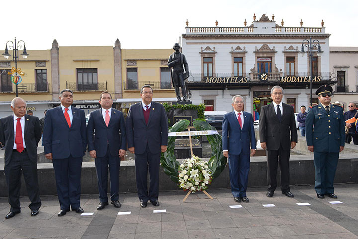 Posteriormente, acompañó al gobernador Salvador Jara Guerrero, a visitar el corazón de Ocampo, que reposa en la Sala del Colegio que posee su nombre. Después, participó en el depósito de la ofren... Ver más...