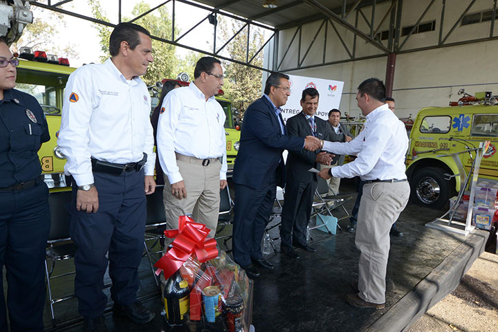 NOTICIAS 17/12/2014Reciben elementos de PC y Bomberos apoyos del AyuntamientoCon una inversión aproximada de 393 mil pesos, el Ayuntamiento de Morelia, presidido por Wilfrido Lázaro Medina, realizó la entrega de apoyos al personal de Protección Civil y Bomberos Municipales, que consisten en canastas navideñas, despensas y bonos económicos.