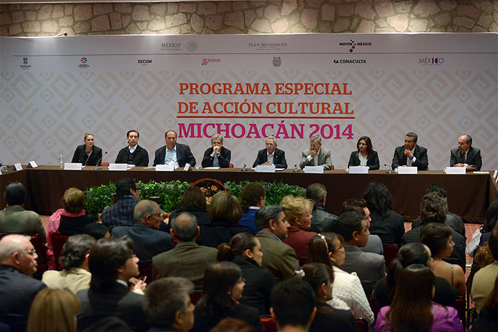 NOTICIAS 11/12/2014Asiste WLM a la presentación de programas ConacultaEl presidente municipal de Morelia, Wilfrido Lázaro Medina, asistió a la presentación de resultados del Programa Especial de Acción Cultural 2014. El alcalde acompañó al titular del Consejo Nacional para la Cultura y las Artes, Rafael Tovar y de Teresa y al gobernador del Estado, Salvador Jara Guerrero.