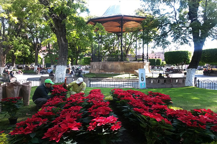 NOTICIAS 08/12/2014Morelia se adorna con nochebuenas y luces navideñasLos principales jardines y plazas de la ciudad se encuentran ya vestidos de rojo y blanco con 4 mil 500 nochebuenas que colocó el Ayuntamiento de Morelia para embellecer aún más los espacios públicos en el inicio de la temporada decembrina, además de las figuras navideñas luminosas que se instalaron en diferentes puntos del primer cuadro.
