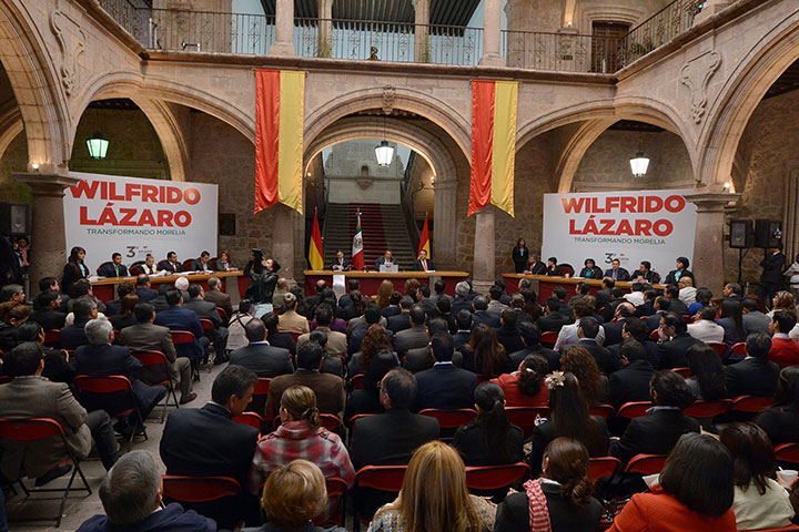 NOTICIAS 09/12/2014Wilfrido rinde su tercer Informe En cumplimiento a lo dispuesto en la Ley Orgánica Municipal, el presidente de Morelia, Wilfrido Lázaro Medina rindió su tercer informe de gobierno en Sesión Solemne de Cabildo, dando cuentas a la ciudadanÃa del estado actual que guarda la administración pública del 2014.