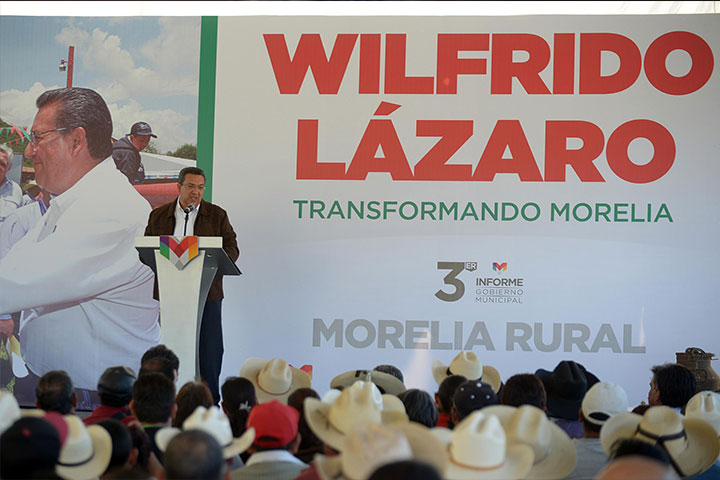 NOTICIAS 04/12/2014Resaltan trabajo en el campo de Morelia Sin antecedente alguno en la historia municipal, el gobierno actual que lidera el presidente Wilfrido Lázaro Medina ha destinado el 33 por ciento del recurso total del Ayuntamiento a acciones que permitan el desarrollo rural y ganadero, esta política generó el agradecimiento y reconocimiento por parte de las autoridades auxiliares y líderes del sector hacia la actual administración municipal.