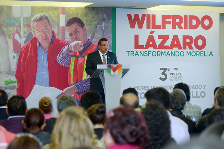 NOTICIAS 05/12/2014Ayuntamiento de Morelia ha impulsado políticas públicas enfocadas a la sustentabilidadEn el marco de los diálogos rumbo al Tercer Informe de Gobierno, el presidente Wilfrido Lázaro Medina afirmó que durante el 2014 su gobierno ha impulsado programas y políticas públicas enfocadas a la sustentabilidad, la cultura ambiental, el ordenamiento territorial y la protección al medio ambiente, prácticas que se han visto fortalecidas con la participación de la sociedad civil organizada.