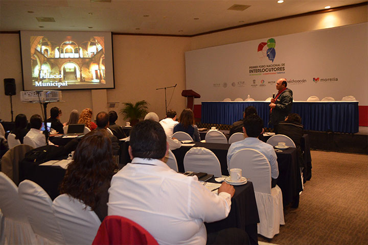 NOTICIAS 20/11/2014Morelia presente en el Foro Nacional de InterlocutoresEn el marco del Primer Foro Nacional de Interlocutores en Innovación y Competitividad TurÃstica de se realiza en la capital michoacana, el Ayuntamiento de Morelia formó parte del programa que incluÃa ponencias y testimonios en materia turÃstica.