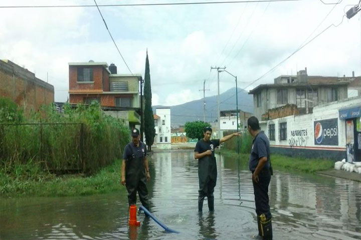 NOTICIAS 04/10/2014PC y Bomberos atienden llamados por inundacionesElementos de Bomberos y Protección Civil municipal atendieron el llamado de la ciudadanía que habita en las colonias Eduardo Ruiz, Tres Puentes y Carlos Salazar, quienes se vieron afectados por la fuerte lluvia que se registró este viernes por la noche .