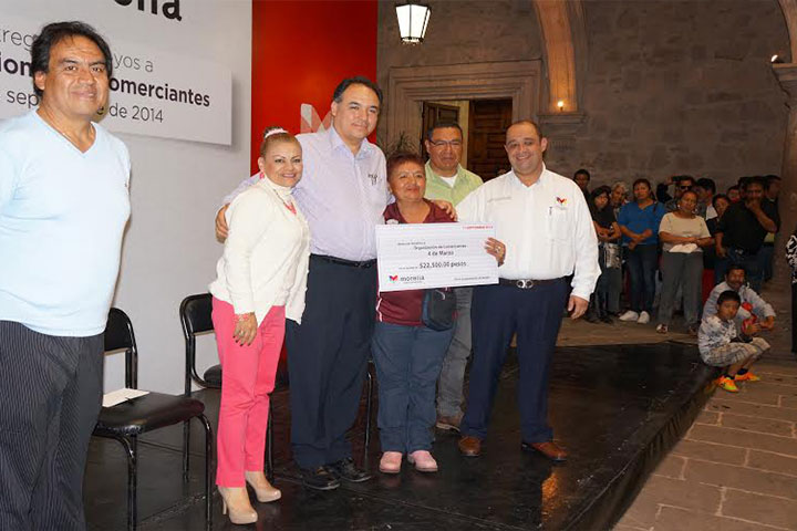 NOTICIAS 11/09/2014Ayuntamiento entrega recursos por 500 mil pesos a comerciantesCon la entrega de recursos por el orden de los 500 mil pesos a integrantes de la agrupación de comerciantes de Organizaciones Unidas, el Presidente Wilfrido Lázaro Medina ratifica su compromiso con los oferentes de la capital michoacana y reconoce el trabajo honrado al que se entregan y desempeñan todos los días, según lo expresó el Secretario municipal, Arturo José Mauricio Fuentes.